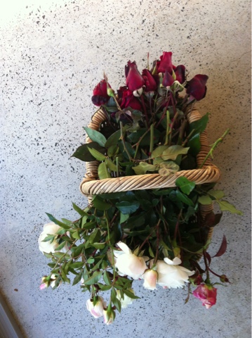 This morning I picked red, pink and white. I'll keep the red ones for Rob's mother, but the white ones I stuck in a vase I bought years ago with this very arrangement in mind.